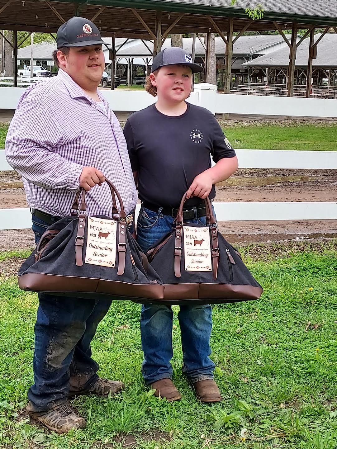 Blake Pillars (left) was recognized with the Michigan Junior Angus Association 2021 Outstanding Senior Member award and Dylan Stoll (right) received the 2021 Outstanding Junior Member award at the 2022 Preview Show.