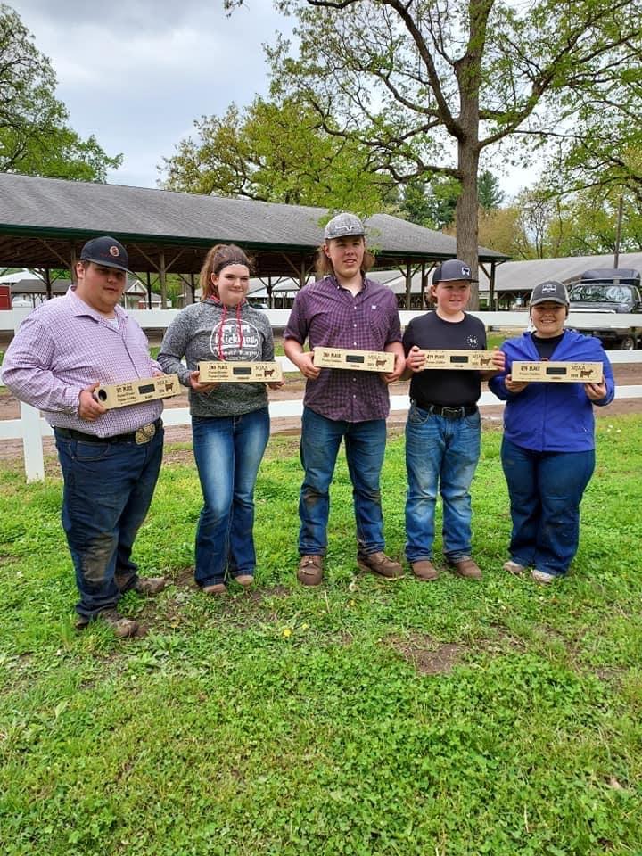These junior members were named the 2021 Michigan Junior Angus Association Premier Exhibitors and Premier Breeders and were presented their awards at the 2022 Preview Show. Pictured from left are Blake Pillars, Martin, first place Premier Exhibitor and Premier Breeder; Charlee Klink, Garden, second place Premier Exhibitor and Premier Breeder; Justin Stoll, Grand Ledge, third place Premier Exhibitor; Dylan Stoll, Grand Ledge, fourth place Premier Exhibitor; and Anika Stehlik, St. Johns, sixth place Premier Exhibitor. Not pictured is Katelyn Dargus, Buchanan, fifth place Premier Exhibitor.